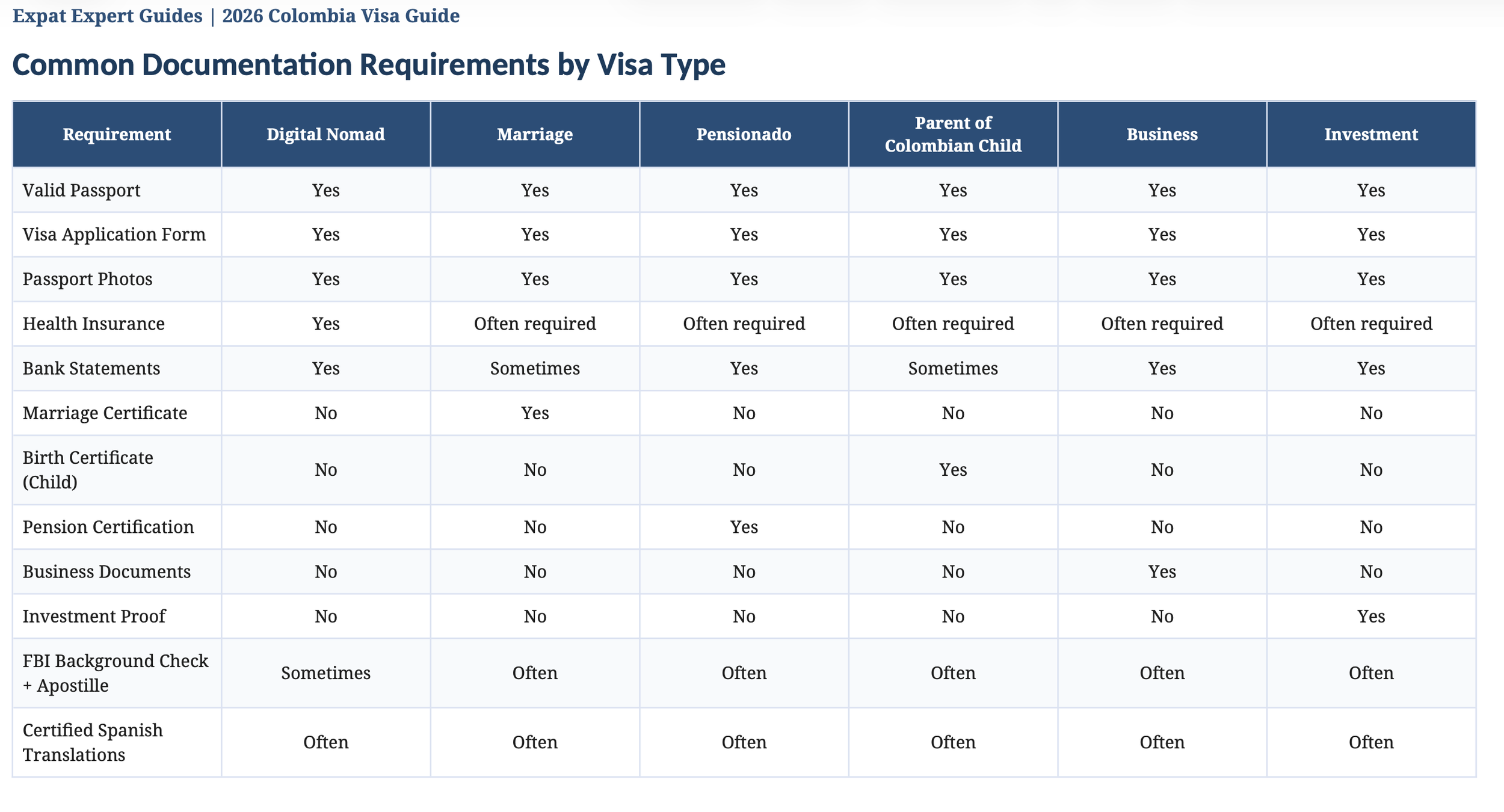 Common Documentation Requirements by Visa Type