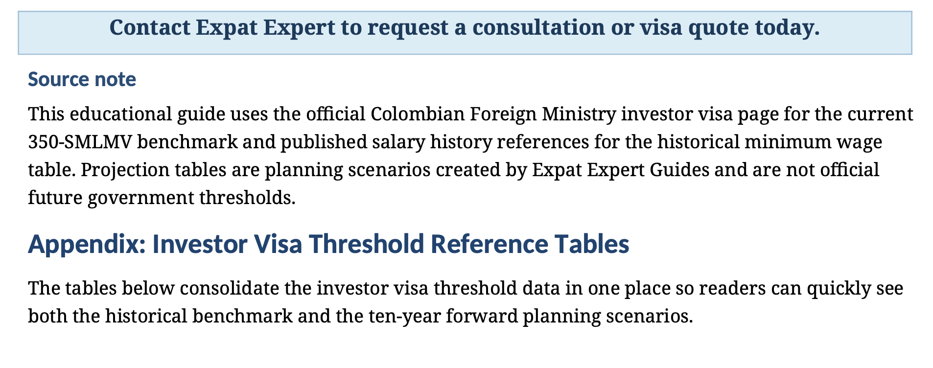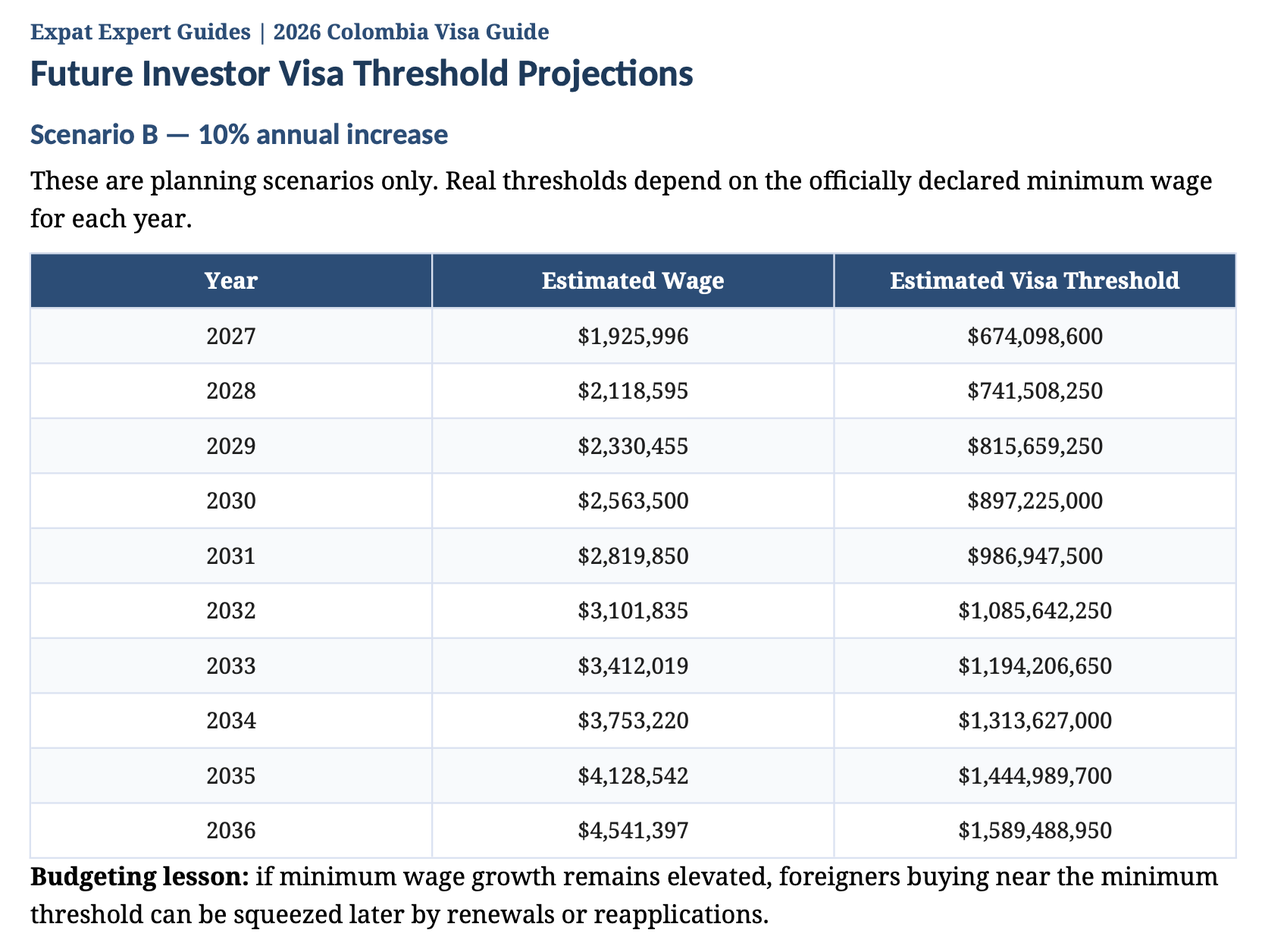 They’re a strategic look at where Colombia’s investor visa threshold is likely heading — based on how the minimum wage has actually moved over time.