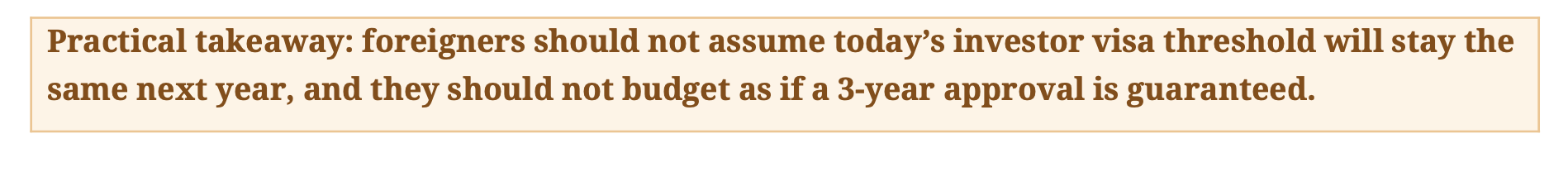 The investor visa threshold is not fixed. It moves every year.